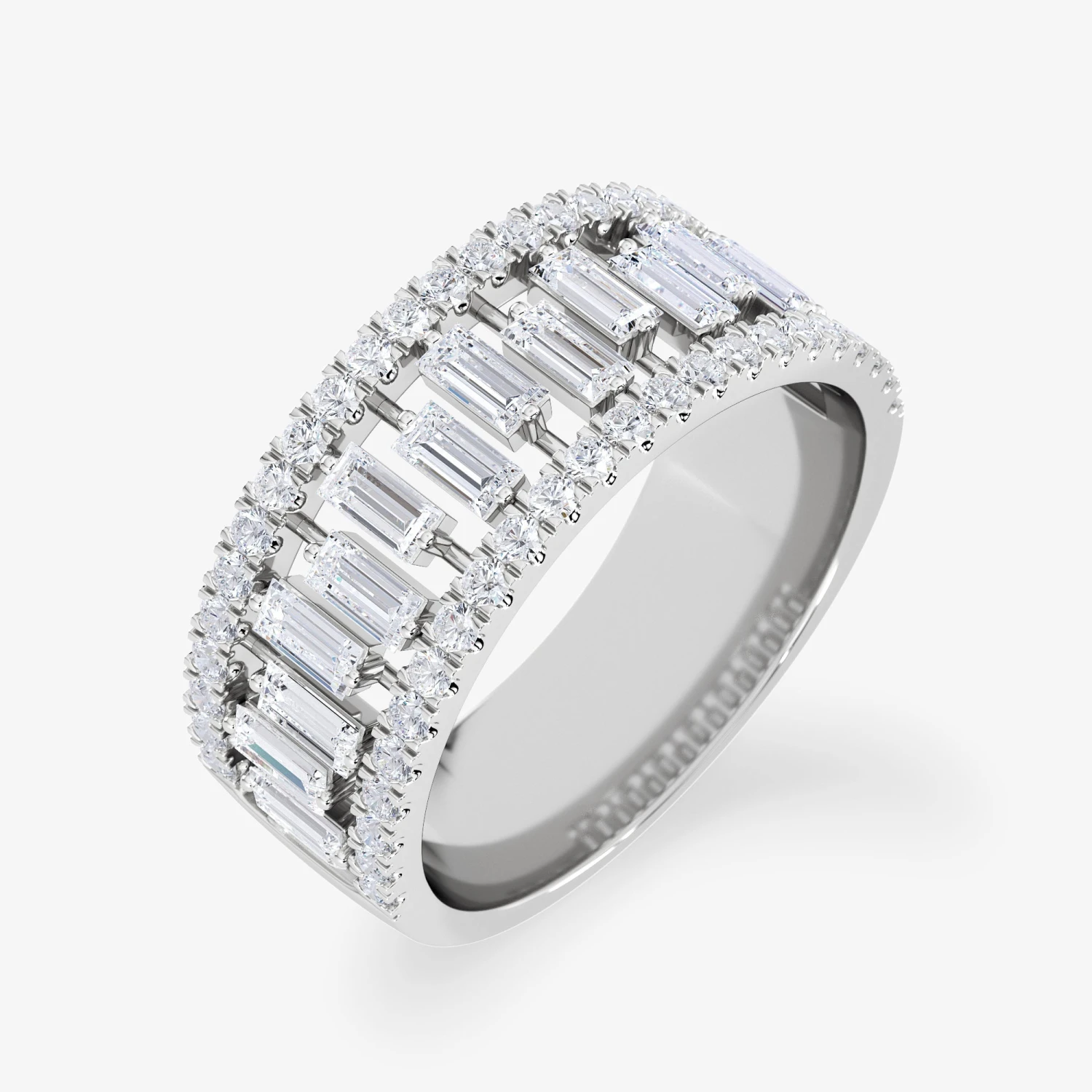 The Canals of Amsterdam collection pays tribute to the city with its unique asymmetrical design, featuring two types of diamond cuts: brilliant and baguette.