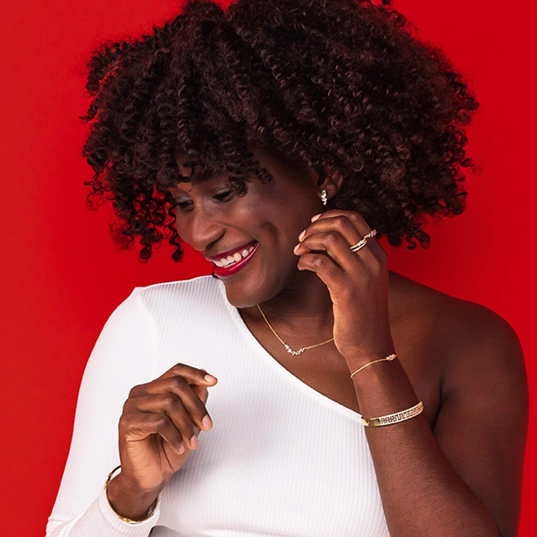 The Spiegel subcollection stands out with its stacked design, giving the illusion of wearing two separate pieces.