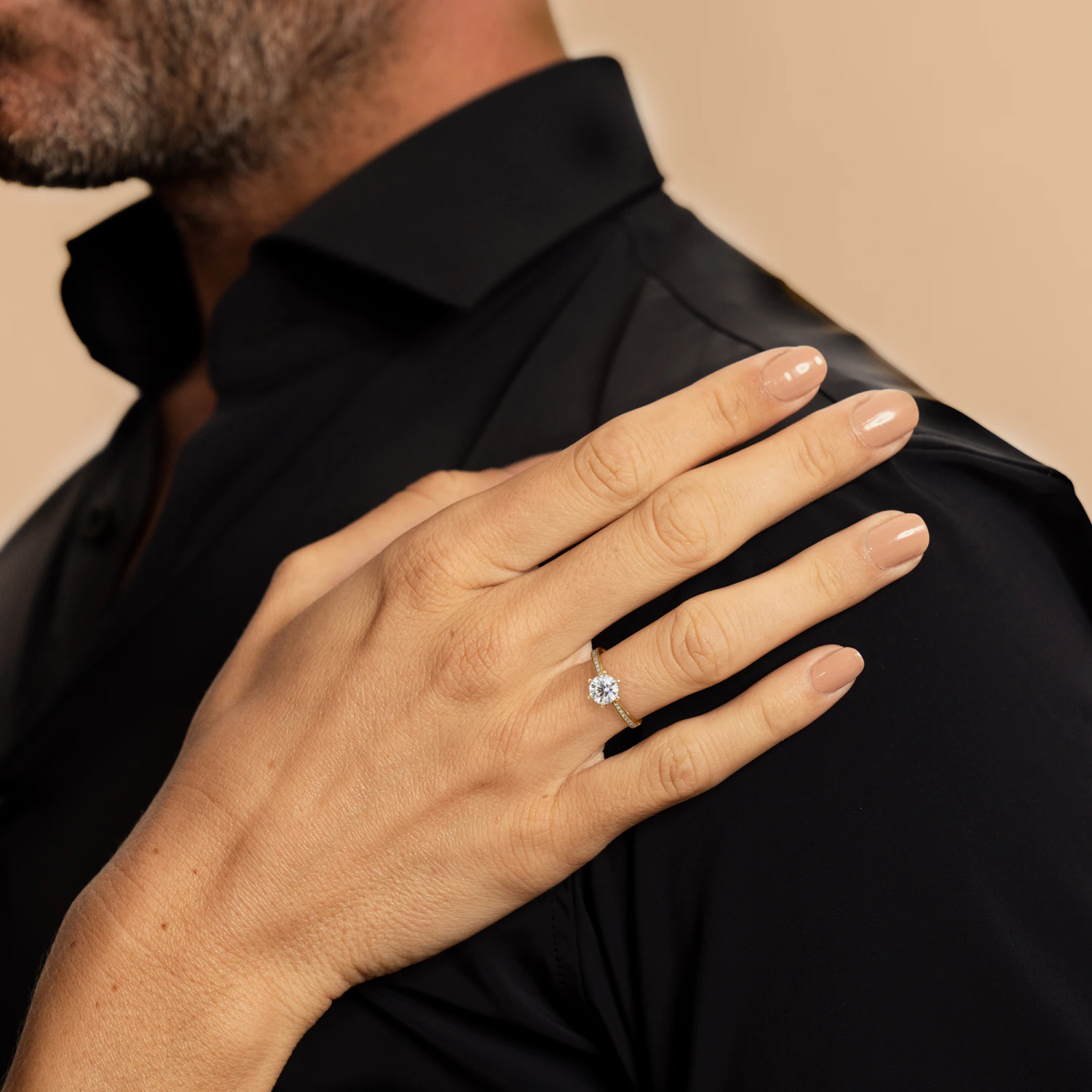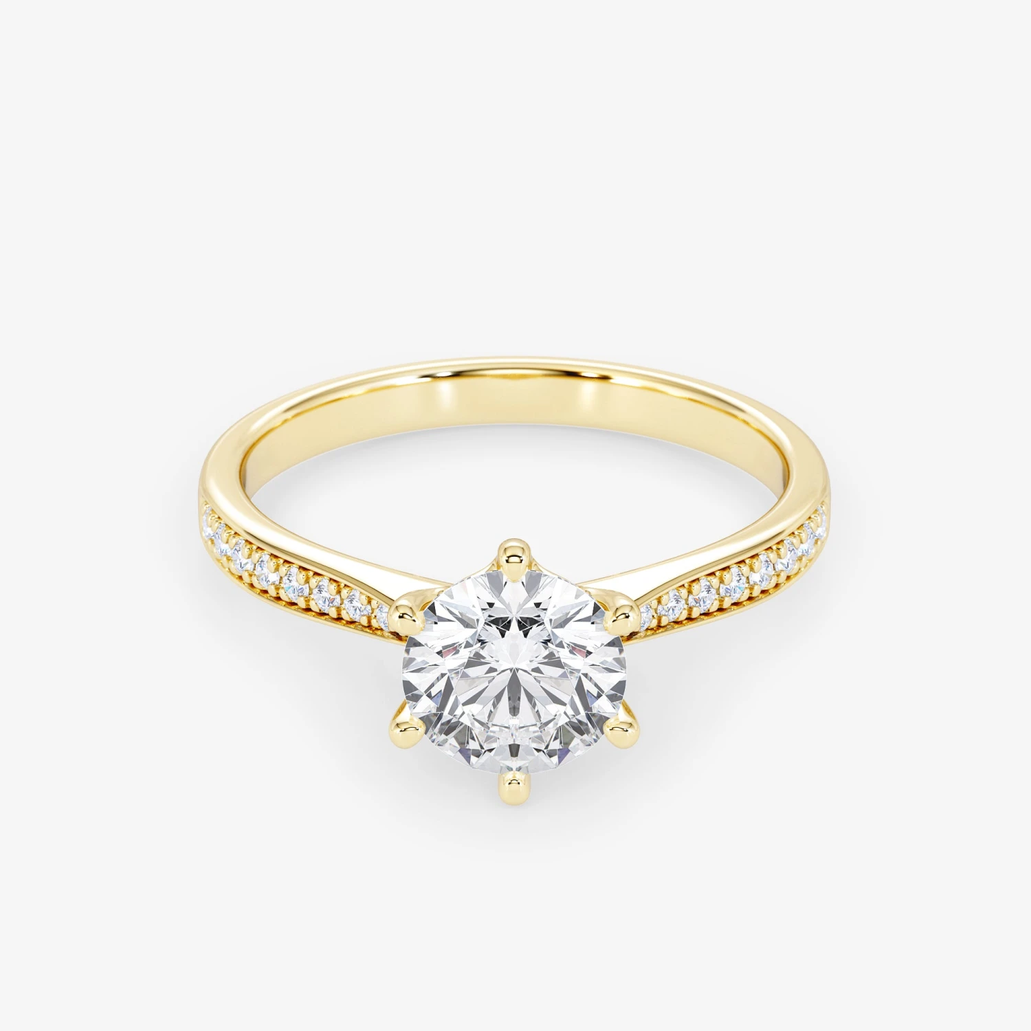 Crafted from the finest 18K gold, this ring exudes a regal charm that is simply irresistible. The brilliant cut diamond at the center of the ring is an absolute showstopper, beautifully complemented by the sparkling side stones that add a touch of glamour and sophistication.
