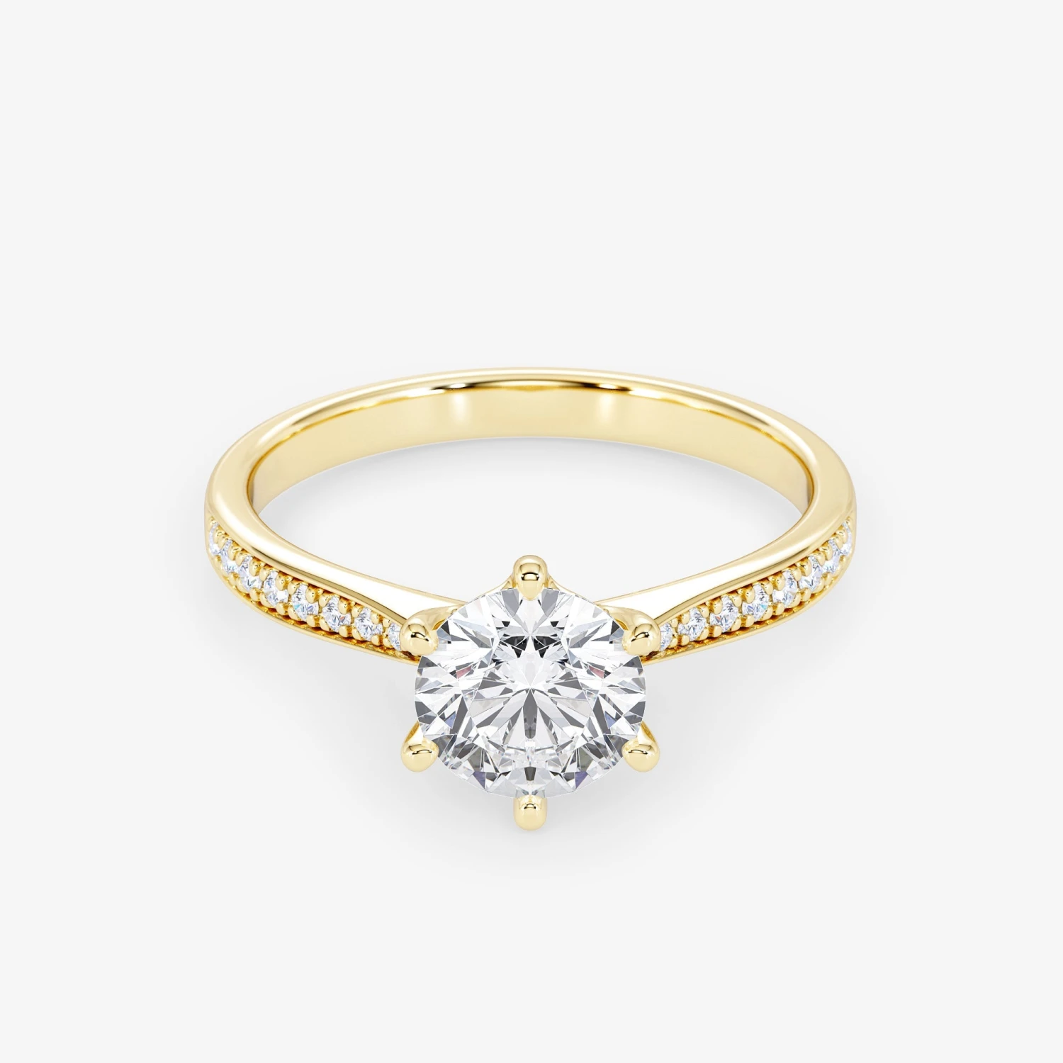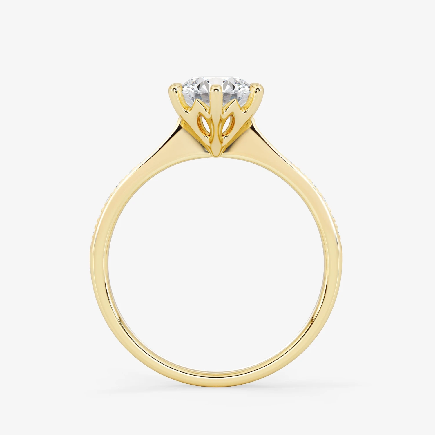 Crafted from the finest 18K gold, this ring exudes a regal charm that is simply irresistible. The brilliant cut diamond at the center of the ring is an absolute showstopper, beautifully complemented by the sparkling side stones that add a touch of glamour and sophistication.