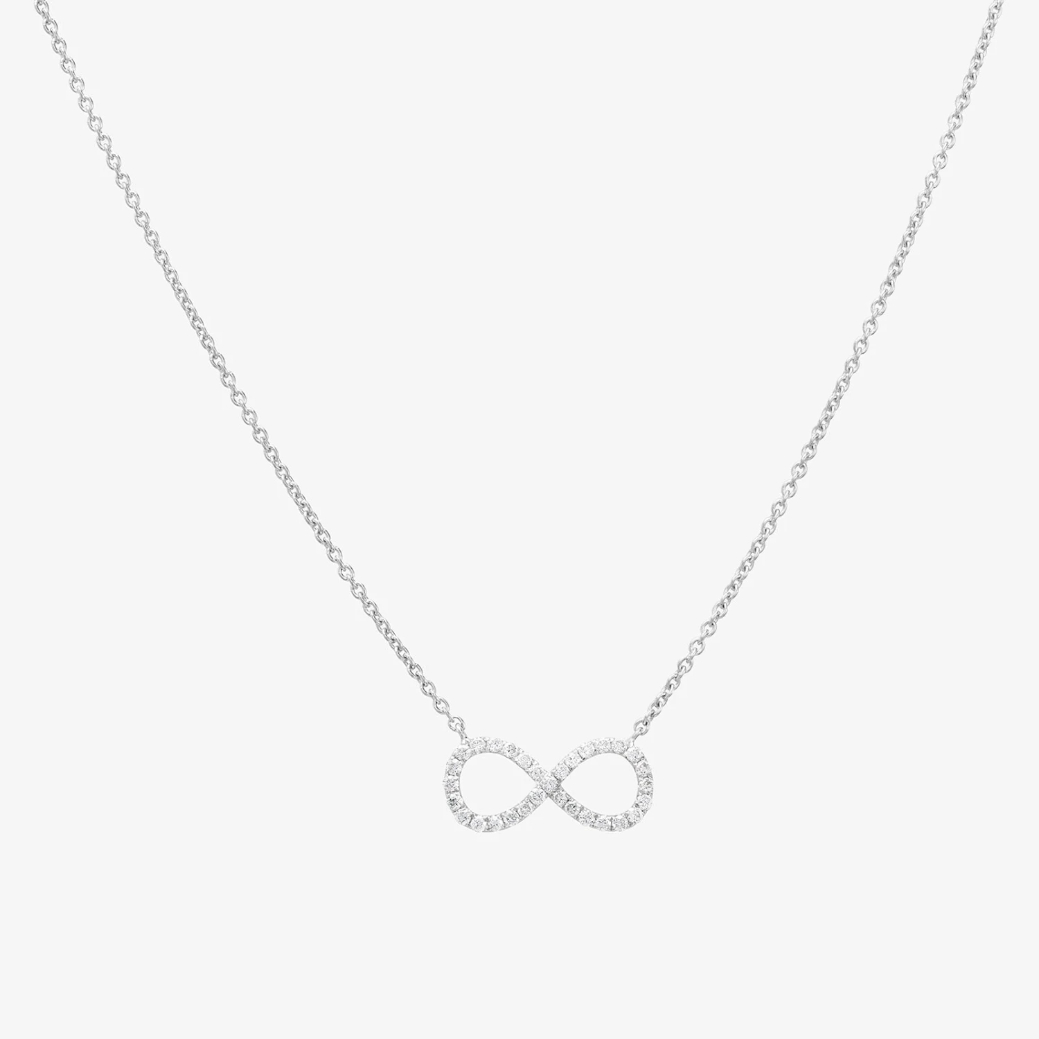 The Eternity Necklace, a timeless symbol of everlasting connection. The necklace is adorned with 31 brilliant diamonds totaling 0.20 carats in Top Wesselton color and Si clarity. it is a unique accessory that adds a touch of edginess and sophistication in 18K gold. Whether worn as a statement or as a timeless fashion accessory, this necklace radiates a sense of grace and devotion, making it a meaningful and for any occasion.