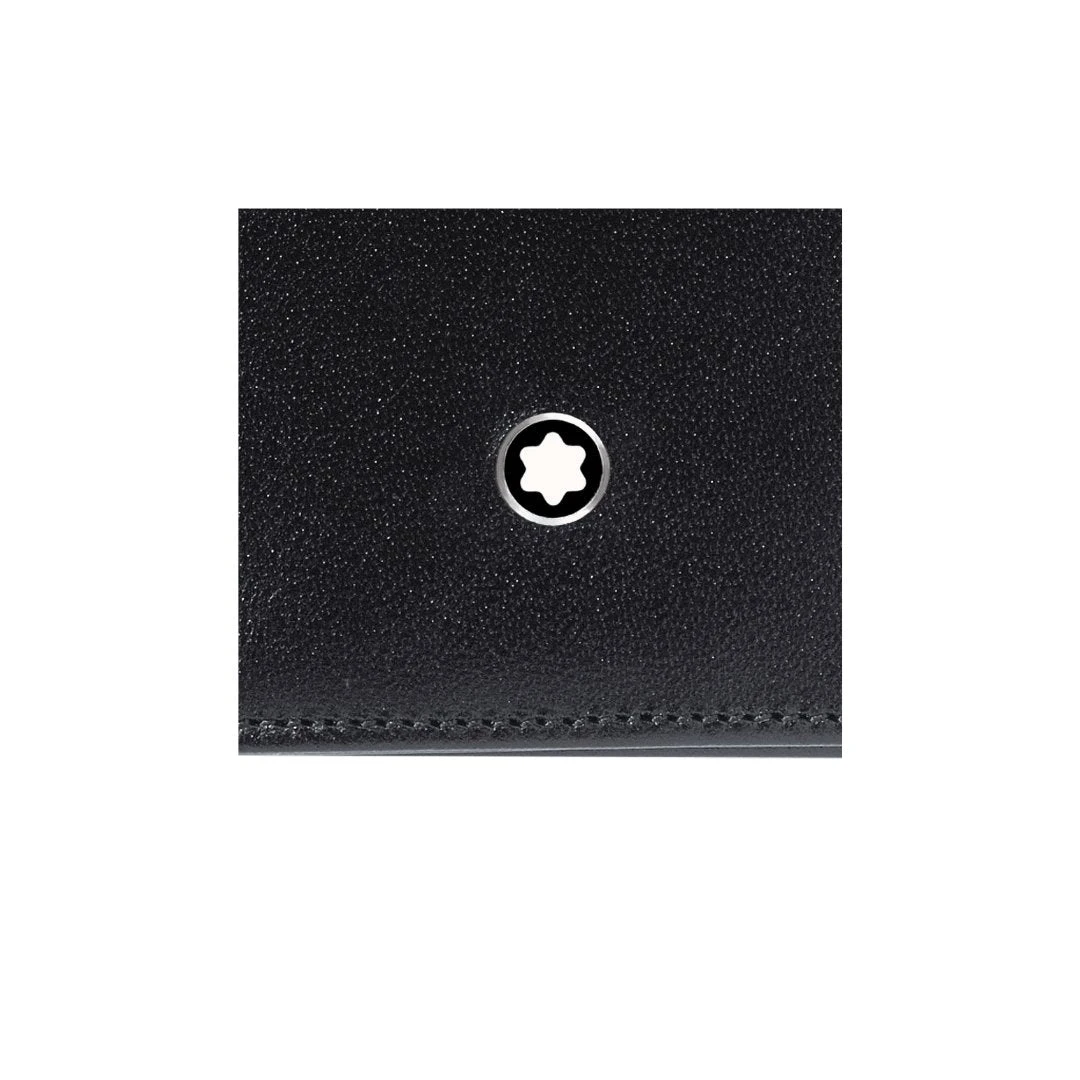 Wallet 14 cc, made of black European full-grain cowhide with unique Montblanc deep shine, jacquard lining with Montblanc brand name, Montblanc emblem with palladium-finish ring, with 14 pockets for credit cards, large zipped pocket, 2 compartments for cash, 2 additional pockets